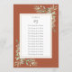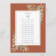 This elegant greenery eucalyptus leaves table seating chart features delicate watercolour leaves on a terracotta background, with your guests' seating plan framed by a gold border. Designed by Thisisnotme©