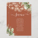 These elegant terracotta greenery floral string lights wedding table numbers can be personalised with your guests' seating plan set in chic typography. The cards are printed on the front and back (double-sided). Designed by Thisisnotme©