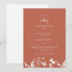 Simple Wedding Invitation. White wildflower floral accent. No parents. Modern design. Terracotta background.