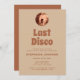Last disco modern retro bachelorette weekend invitation in terracotta burnt orange colours with disco ball.