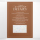 We're loving this trendy, modern terracotta Trifold invitation simple, elegant, and oh-so-pretty, it features a hand drawn leafy wreath encircling a modern wedding monogram. It is personalised in elegant typography, and accented with hand-lettered calligraphy. Finally, it is trimmed in a delicate frame. To remove meal choices in the RSVP section, we have created a how-to video for you here: https://youtu.be/ZGpeldQgxoE. A Wedding Details contains extra details like, driving directions, reception information, hotel information, etc. This can also include your wedding website including provision for a map (via screen capture) has been included, and even your favourite engagement photo on the back! Veiw suite here: