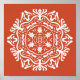 This white mandala sits on a dark orange background. The colours are creative and warm. Part of the Erghenn Mandala Collection.