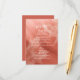 This simple, elegant autumnal wedding details card has a terracotta colour theme featuring subtle monochromatic maple leaves accent overlying a blush to terracotta gradient background - by katz_d_zynes