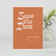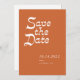A minimalist terracotta modern save-the-date invitation that features retro-inspired typography and a pop of terracotta burnt orange colour for the autumn bride. An invitation that pairs perfectly with any non-traditional wedding aesthetic.