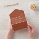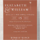 This all-in-one minimalist wedding invitation features modern typography on a terracotta background. The invitation includes a perforated RSVP card with your wedding website QR code. Designed by Thisisnotme©