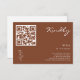Simple, modern and minimalist in style, terracotta colored wedding rsvp card with QR code and removable drawn foliage motif.