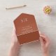 This chic minimalist all-in-one wedding invitation can be personalised with your monogram initials and wedding day information on a terracotta background. The invitation includes a perforated RSVP card with your wedding website QR code and details. Designed by Thisisnotme©