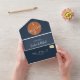 Embrace boho chic with our Modern Terracotta and Navy Blue All-in-One Wedding Invitation. Featuring a trendy hand-drawn monogram of lovebirds and stylish handwritten script, this invitation exudes modern elegance. The burnt orange and navy blue palette adds a touch of sophistication, while the custom photo on the back, along with wedding details and a QR code for RSVP, ensures a seamless experience for you and your guests. Set the stage for your special day with this unique and personalised invitation that captures the essence of your love story.