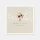 Elegant, modern, rustic terracotta and cream beige wedding napkins with beautiful burgundy watercolor flowers in mason jar monogram, string lights and trendy calligraphy script.