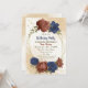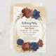 Beautiful earth tone fall birthday party invitations featuring terracotta and navy blue flowers with green leaves . The gold glitter details are simulated. FOR MORE MATCHING PRODUCTS click on the collection above or contact me