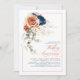 Navy blue and terracotta floral boho fall wedding anniversary invitations