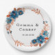 Terracotta Navy Blue Floral Wedding Paper Plate