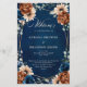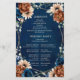 Elegant Navy blue, Terracotta , Orange earthy floral theme wedding program featuring elegant bouquet of Navy blue, Terracotta colour roses peonies and green eucalyptus leaves. Please contact me for any help in customisation or if you need any other product with this design.
