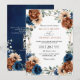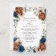 Terracotta Navy Blue Greenery Chic QR Code Wedding Invitation