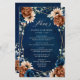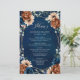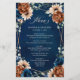 Elegant Navy blue, Terracotta , Orange earthy floral theme wedding menu featuring elegant bouquet of Navy blue, Terracotta colour roses peonies and green eucalyptus leaves. Please contact me for any help in customisation or if you need any other product with this design.