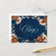 Elegant Navy blue, Terracotta , Orange earthy floral theme RSVP postcard featuring elegant bouquet of Navy blue, Terracotta colour roses peonies and green eucalyptus leaves. Please contact me for any help in customisation or if you need any other product with this design.
