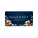 Elegant Navy blue, Terracotta , Orange earthy floral theme wedding Address label featuring elegant bouquet of Navy blue, Terracotta colour roses peonies and green eucalyptus leaves. Please contact me for any help in customisation or if you need any other product with this design.