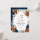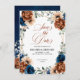 Elegant Navy blue, Terracotta , Orange earthy floral theme wedding save the date card featuring elegant bouquet of Navy blue, Terracotta colour roses peonies and green eucalyptus leaves. Please contact me for any help in customisation or if you need any other product with this design.