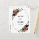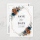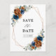 Elegant Navy blue, Terracotta , Orange earthy floral theme save the date postcard featuring elegant bouquet of Navy blue, Terracotta colour roses peonies and green eucalyptus leaves. Please contact me for any help in customisation or if you need any other product with this design.