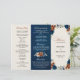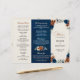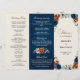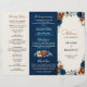 Elegant Navy blue, Terracotta , Orange earthy floral theme wedding tri fold program featuring elegant bouquet of Navy blue, Terracotta colour roses peonies and green eucalyptus leaves. Please contact me for any help in customisation or if you need any other product with this design.
