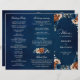Elegant Navy blue, Terracotta , Orange earthy floral theme wedding tri fold program featuring elegant bouquet of Navy blue, Terracotta colour roses peonies and green eucalyptus leaves. Please contact me for any help in customisation or if you need any other product with this design.