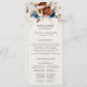 Elegant Navy blue, Terracotta , Orange earthy floral theme wedding program featuring elegant bouquet of Navy blue, Terracotta colour roses peonies  and eucalyptus leaves. Please contact me for any help in customisation or if you need any other product with this design.