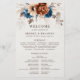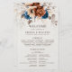 Elegant Navy blue, Terracotta , Orange earthy floral theme wedding program featuring elegant bouquet of Navy blue, Terracotta colour roses peonies and eucalyptus leaves. Please contact me for any help in customisation or if you need any other product with this design.
