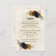 Beautiful earth tone fall wedding reception details enclosure card featuring terracotta, beige and navy blue flowers with green leaves .