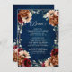 Elegant Navy blue, Terracotta , Orange earthy floral theme wedding details card featuring elegant bouquet of Navy blue, Terracotta colour roses peonies and green eucalyptus leaves. Please contact me for any help in customisation or if you need any other product with this design.