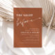 The "Minimalist Terracotta The Night Before Rehearsal Dinner Invitation" offers a sophisticated and understated option for your pre-wedding celebration. With its terracotta hue, this invitation brings warmth and elegance to the occasion. Embracing minimalist design principles, it features clean lines, simple typography, and a focus on essential details. Perfect for couples seeking a refined and stylish invitation that sets the tone for an elegant rehearsal dinner.