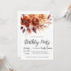 Elegant terracotta orange watercolor flowers create a bold floral arrangement across the top of this birthday invitation. A simple script gives it a modern vibe.