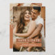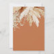 Elegant boho wedding save the date cards featuring a photo of the bride & groom, monocromatic earth tone boxes with a editable text template. On the reverse is a terracotta background with watercolor desert dried palm leaves, and trendy pampas grass.