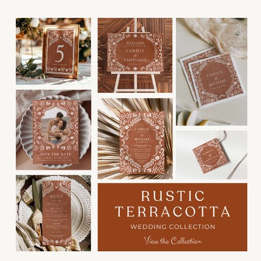 Celebrate your love with this rustic terracotta papel picado wedding Save the Date Card featuring an intricate floral design. Perfect for a boho-inspired wedding. Matching items in our store Cava Party Designs.