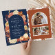 Terracotta Pumpkin Floral QR Code Navy Wedding Invitation