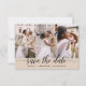 QR Code - Modern and Elegant Landscape Horizontal Three (3) Photo Save the Date Wedding Magnet with hand lettered script typography. The save the date invitation magnet includes script typography and chic and simple design that you can add your customised engagement photograph picture to.