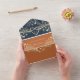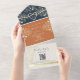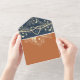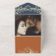 Chic and practical, this all-in-one terracotta wedding invitation features elegant gold floral accents, a monogram on a navy flap, and a modern QR code for RSVP. The folded format combines your invite, response section, and guest details in one convenient piece — no envelope needed. Perfect for rustic boho weddings, outdoor summer celebrations, or modern romantic themes. Personalise the names, date, website, and reply options with ease.