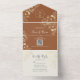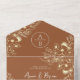 Simple, elegant, boho floral, wildflower gold and burnt orange terracotta all-in-one wedding invitation with QR code and monogram.