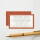 Classic type and an elegant frame of rich orange-red terracotta give this online RSVP request card the versatility to integrate with all sorts of invitations, just adjust the background colour to match your event colours. Don't forget to personalise the reply by date and website url text of this online RSVP insert card and direct your guest to your wedding website all while saving some trees and money on postage.