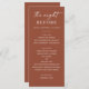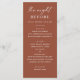 Elevate your rehearsal dinner with this minimalist terracotta menu featuring a modern layout and warm autumn tones. Designed for stylish fall celebrations, this customisable menu adds a sophisticated touch to your pre wedding event. Clean typography and a subtle, earthy palette make it perfect for contemporary barn weddings or cosy indoor dinners.