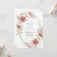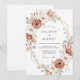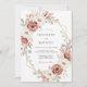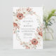 This design features a warm and earthy palette of terracotta, rust, and ivory tones. Delicate watercolor illustrations of lush roses and ranunculus are intertwined with silver dollar eucalyptus and sage greenery. Gold accents add elegance to the rustic bohemian aesthetic, making it ideal for a fall or autumnal event.
