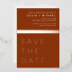 Wedding Elegant Terracotta - Burnt Orange and Rose Gold Save the Date Cards. The Save the Date cards contain a modern hand lettered cursive script typography that are elegant, simple and modern to use after you minimalist simple wedding day celebration.