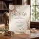 Announce your special day with earthy warmth and elegant floral charm, featuring an inviting blend of burnt orange, muted clay, and delicate greenery.This design centers on an asymmetrical composition of warm-toned dried palm elements, wheat stems, and lush eucalyptus foliage, creating a natural frame around sophisticated serif and flowing script typography. The color palette masterfully balances deep burnt orange and peach hues against a soft cream background, utilizing shading and light to create visual depth and a soft, painterly aesthetic.This is a flat printed image with a watercolor botanical texture effect, not actual raised material.