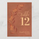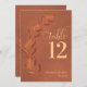 These beautiful wedding table number cards feature a modern design with a sprig of rust orange or burnt umber leaves on a marbled terracotta clay coloured background. The lettering is done in modern script font and the hand painted watercolor foliage or vines gives the card a rustic yet elegant feel. Wonderful way to add beauty and class to your wedding reception while helping your guests to find the correct table.