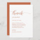the design shows classic elegant wedding thank you enclosure card in rustic terracotta calligraphy and typography with white background. the design is classic unique and will be perfect for your wedding.