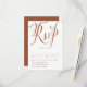 This customisable terracotta wedding RSVP card features rustic calligraphy, offering a charming and personal touch to your wedding invitations. The classic terracotta and white rsvp card makes it versatile and easy to pair with any theme, while the elegant calligraphy adds a warm, rustic feel. Simply personalise it with your event details and RSVP options, allowing guests to easily respond in style. It's a beautiful, functional way to keep your wedding plans organised while giving your invites a unique, handcrafted vibe. Perfect for couples seeking a mix of classic and rustic elegance!