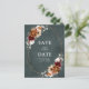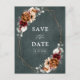 Elegant Red Burgundy, Terracotta , Orange earthy floral theme wedding save the date postcard featuring elegant bouquet of Marsala, Terracotta colour roses peonies and sage green eucalyptus leaves. Please contact me for any help in customisation or if you need any other product with this design.
