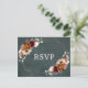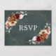Elegant Red Burgundy, Terracotta , Orange earthy floral theme wedding RSVP postcard featuring elegant bouquet of Marsala, Terracotta colour roses peonies and sage green eucalyptus leaves. Please contact me for any help in customisation or if you need any other product with this design.