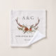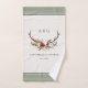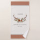 Rustic foliage, floral and stag antlers home personalise wedding gift towel set. With beautiful watercolor foliage, white, rust, terracotta and sage green florals, stag antlers, this modern rustic set will look classy in your home and great reminder of your special day.