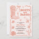 Celebrate in style with our hand drawn "Boots and Bubbly" bridal shower invitation, perfect for a fun and chic rustic country-themed event. This playful design features hand-drawn illustrations of a stylish cowboy boot, a champagne glass, and whimsical floral elements, all in editable vibrant terracotta and soft peach. The casual and festive font adds a touch of charm, setting the perfect tone for a joyful and memorable celebration. This invitation is fully editable, allowing you to customise the text and colours to match your unique bridal shower theme. Whether you're hosting a backyard bash or a rustic vineyard party, this invitation ensures your guests will be excited for the festivities.