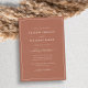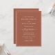 Terracotta Script Wedding Invitation. Make your wedding invitation as memorable as your special day with this chic and stylish design. Featuring a simple minimalist look with a classy traditional touch, this modern text-only invitation features a hand-lettered calligraphy script with a classic terracotta / burnt orange border frame. Find coordinating products in the Simple Elegant Terracotta Border Wedding Suite.